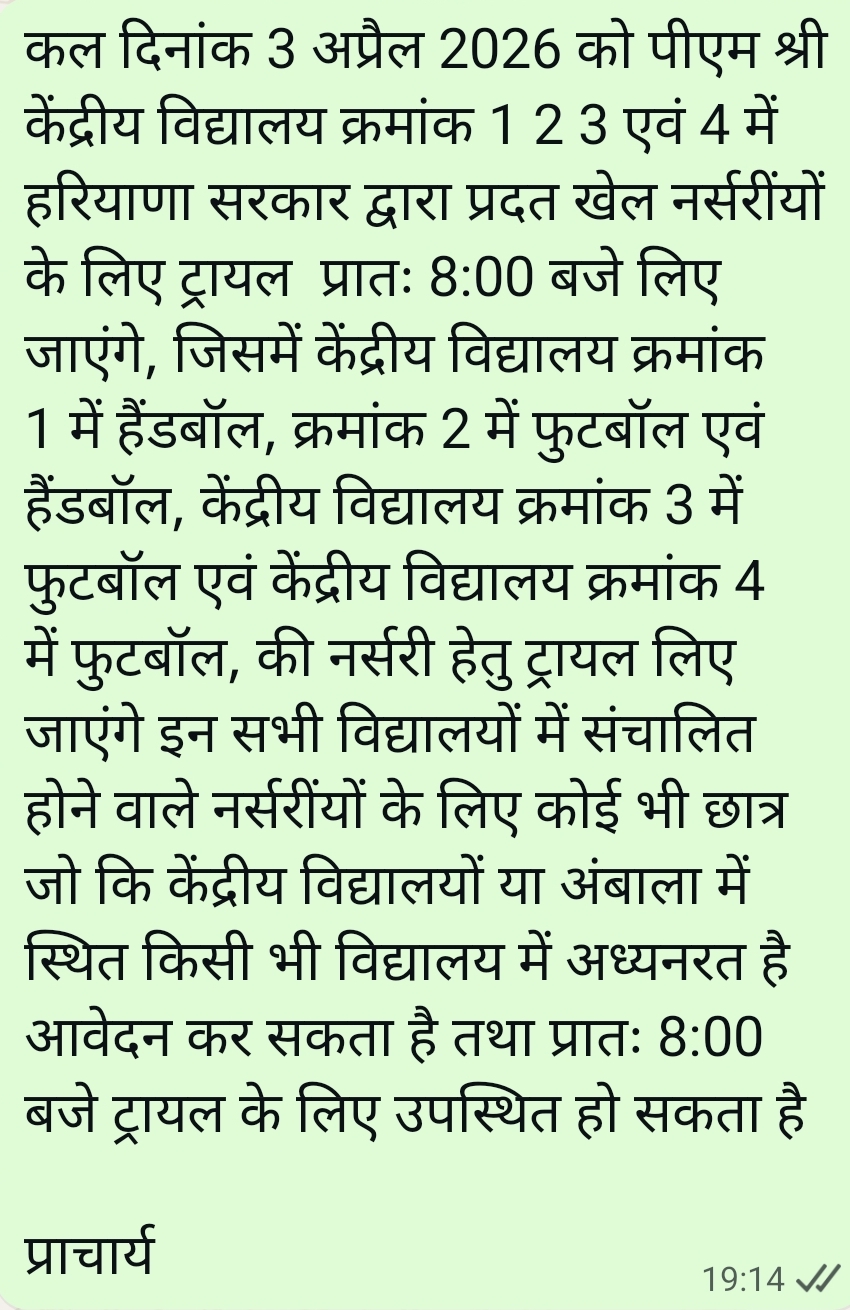 केवी 4 अंबाला की गतिशील छात्र परिषद देखने के लिए यहां क्लिक करें |